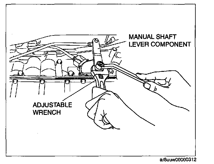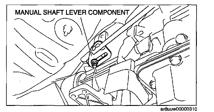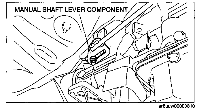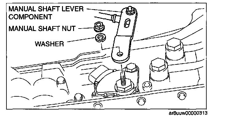^ Do not use an impact wrench. Hold the manual shaft lever when removing the manual shaft nut, otherwise the transmission may be damaged.