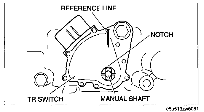 17. Verify the TR switch reference line and the notch of the manual shaft are aligned.