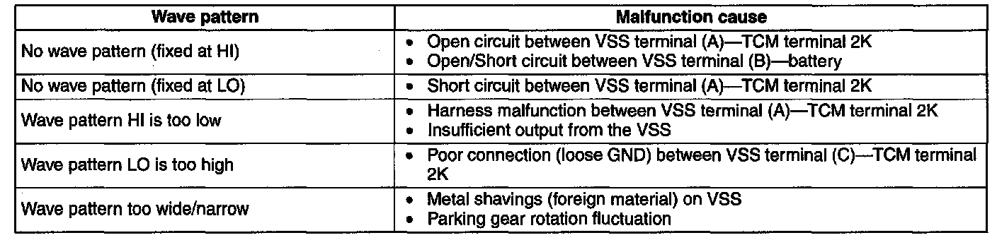 ^ If the actual pattern of the VSS signal is not the same as the reference pattern, inspect and repair the following items:
