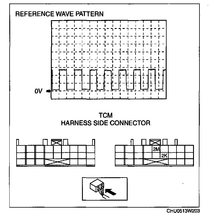 1. Verify using an oscilloscope that the wave pattern for the VSS signal that is input to TCM terminal 2K is the same as the reference wave pattern.