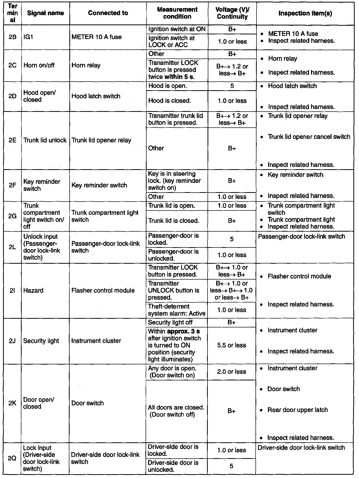Terminal Voltage Table (Reference) (Part-2):