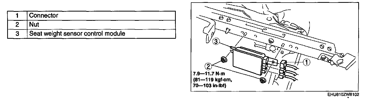 SEAT WEIGHT SENSOR CONTROL MODULE REMOVAL/INSTALLATION