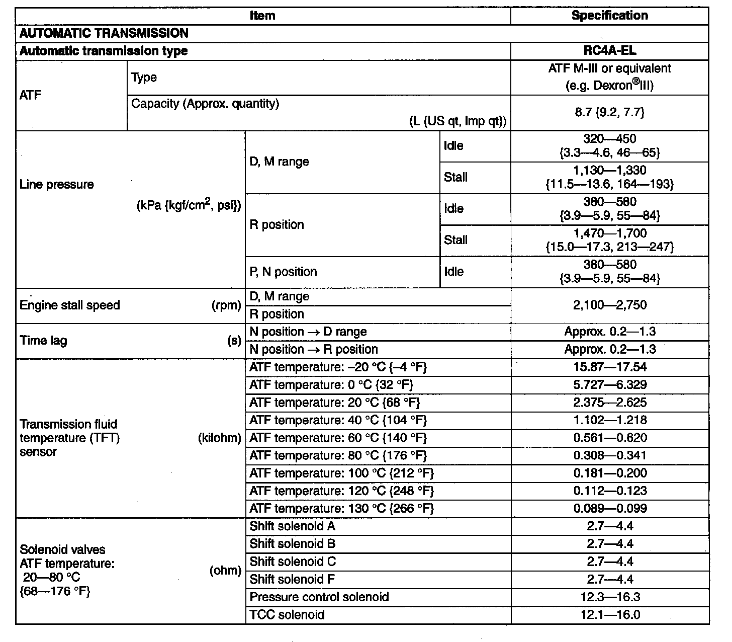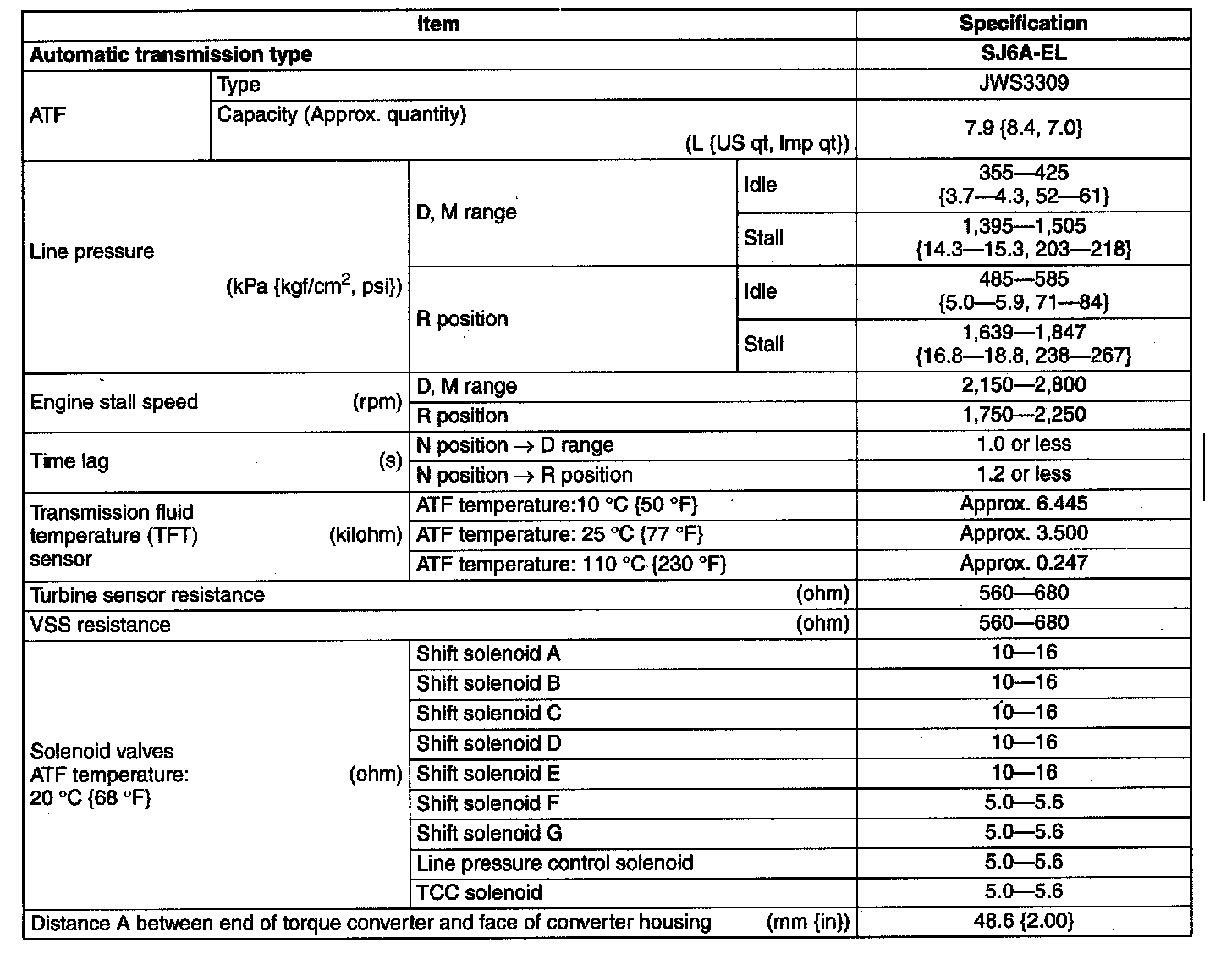 Transmission/Transaxle Technical Data