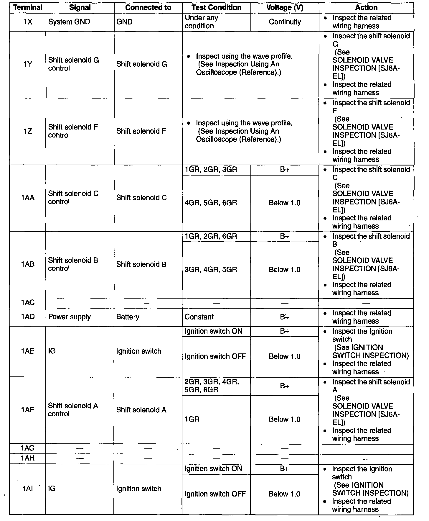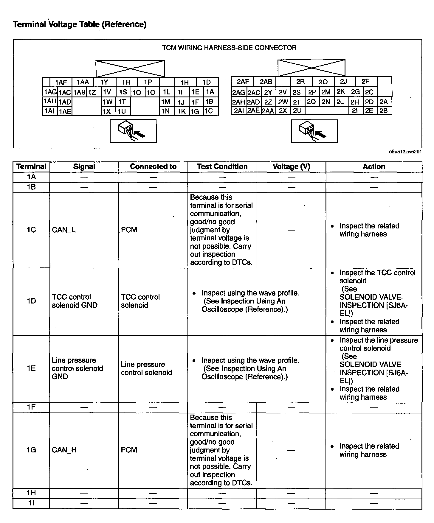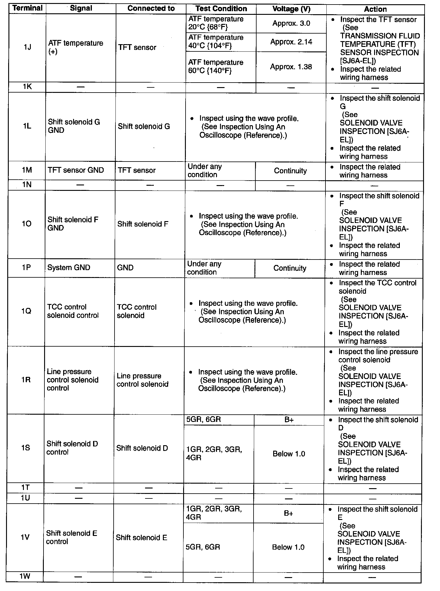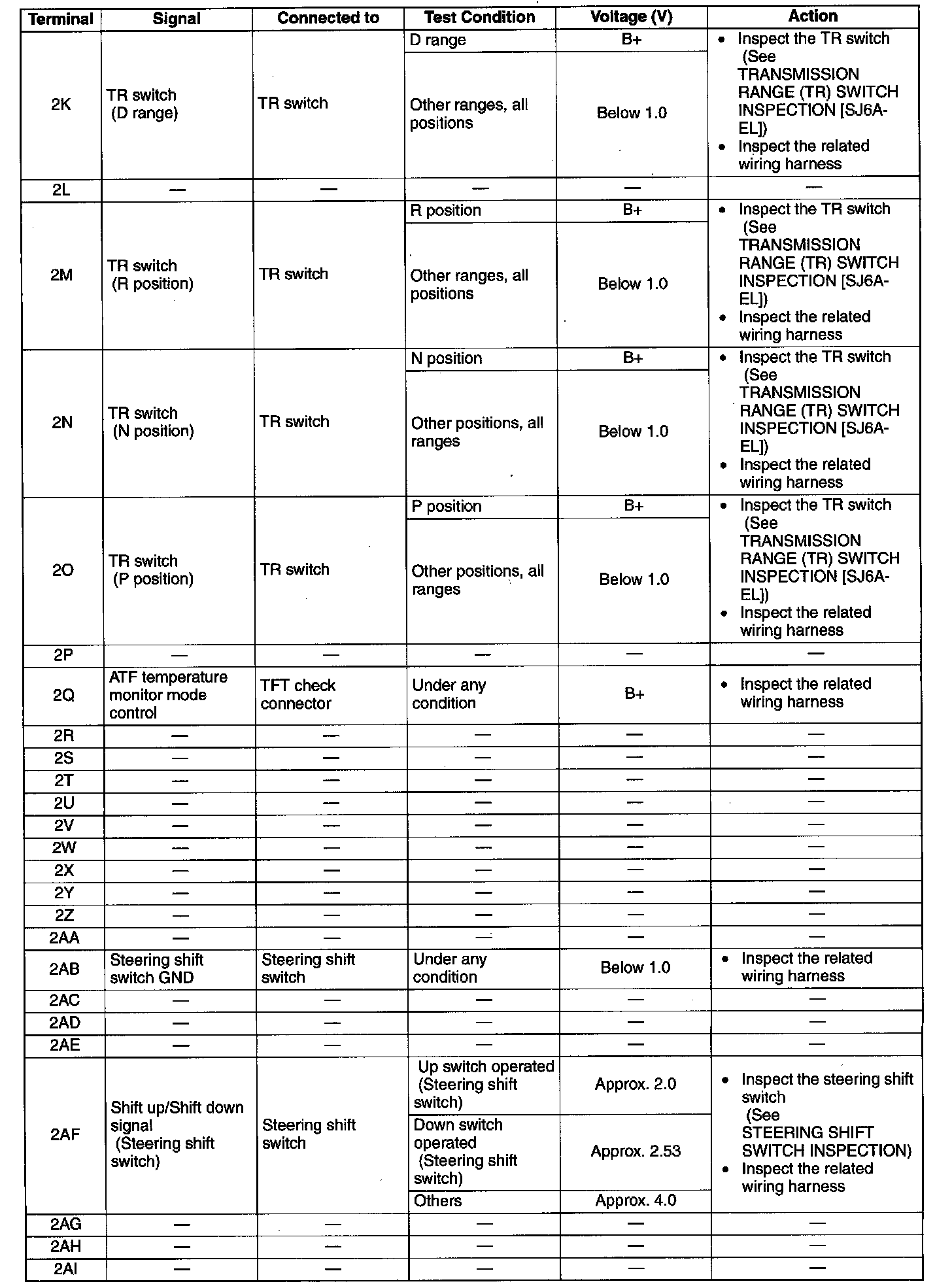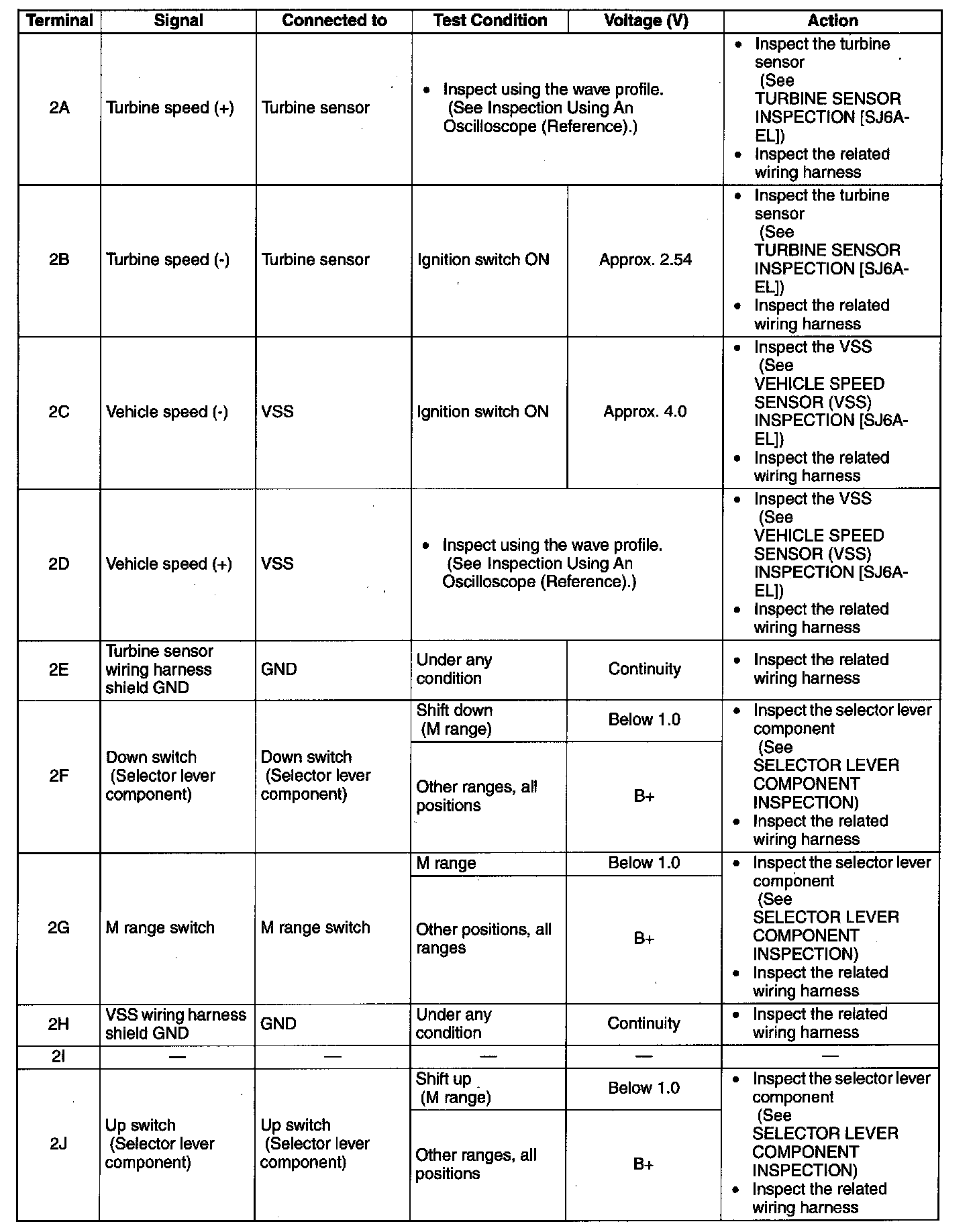 TCM INSPECTION [SJ6A-EL]Terminal Voltage Table (Reference)