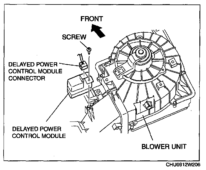2. Disconnect the delayed power control module connector.