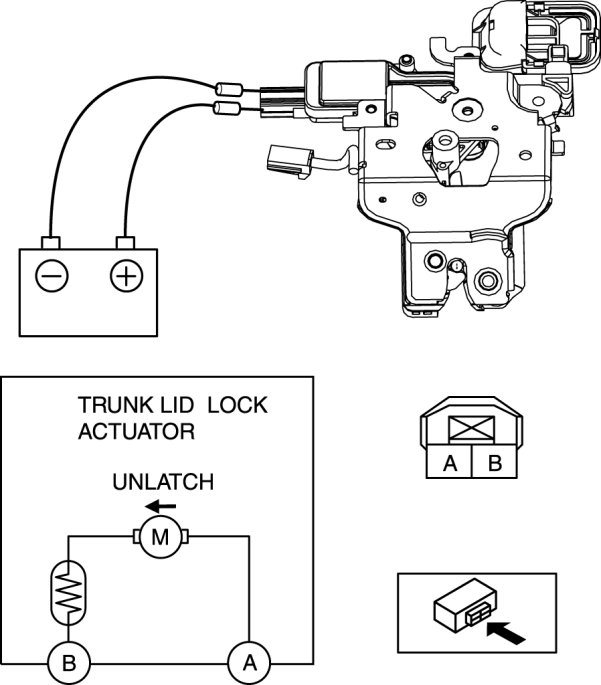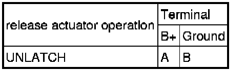 - If not as indicated in the table, replace the trunk lid latch and release actuator.