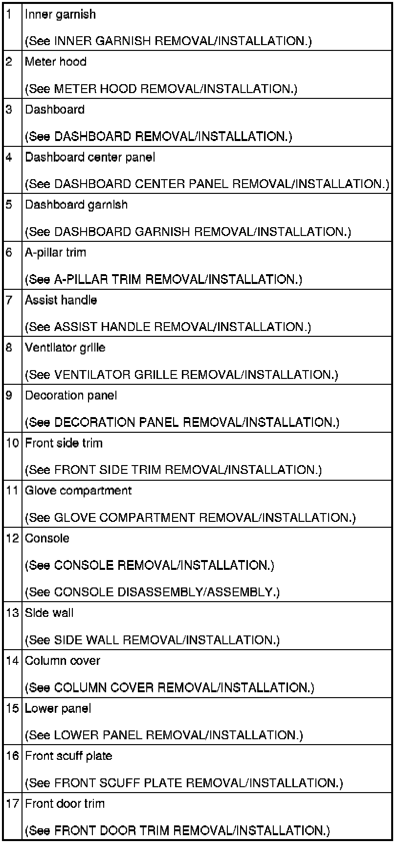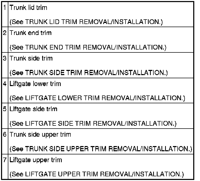 INTERIOR TRIM LOCATION INDEX