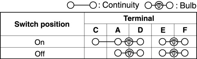 Verify that the continuity between the seat warmer switch terminals is as indicated in the table.