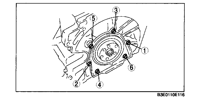 3. Tighten the rear oil seal bolts in the order as shown in the figure.