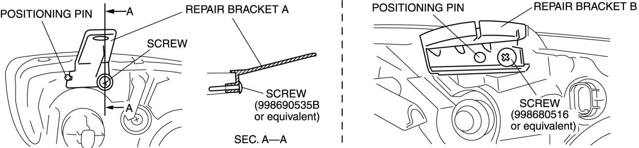 - Verify that the front combination light is not damaged before using the repair bracket for installation when the original brackets are damaged. If the front combination light component is damaged, replace the light as a single unit.