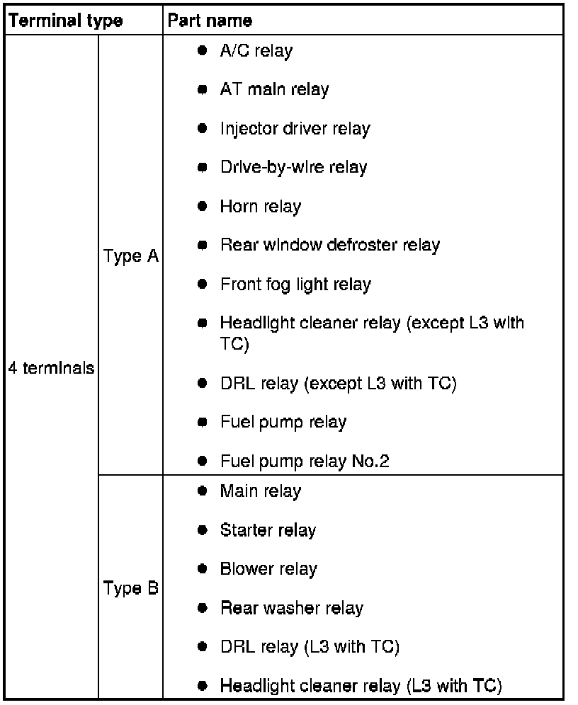 - If not as indicated in the table, replace the relay.