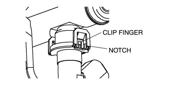 7. Verify that the injector and clip are correctly installed with the clip locked onto the injector cup notch.