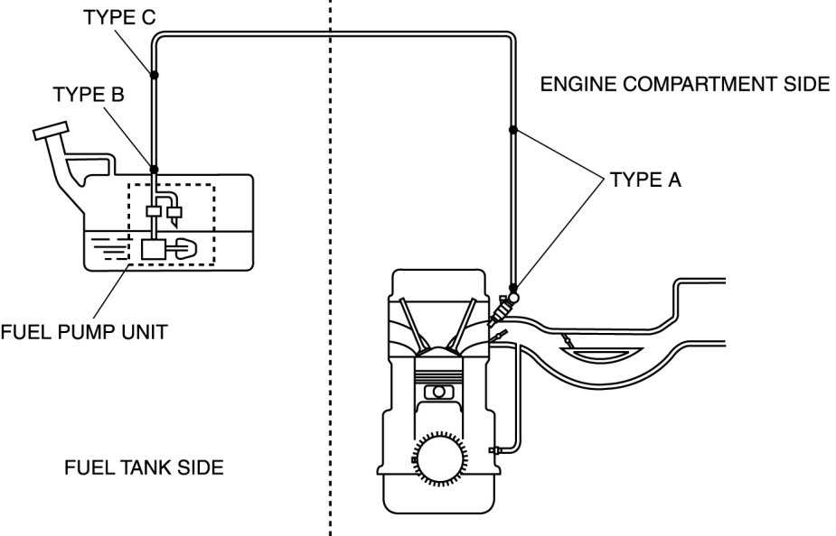 - Fuel is very flammable liquid. If fuel spills or leaks from the pressurized fuel system, it will cause serious injury or death and facility breakage. Fuel can also irritate skin and eyes. To prevent this, always complete the "Fuel Line Safety Procedure", while referring to the "BEFORE SERVICE PRECAUTION".