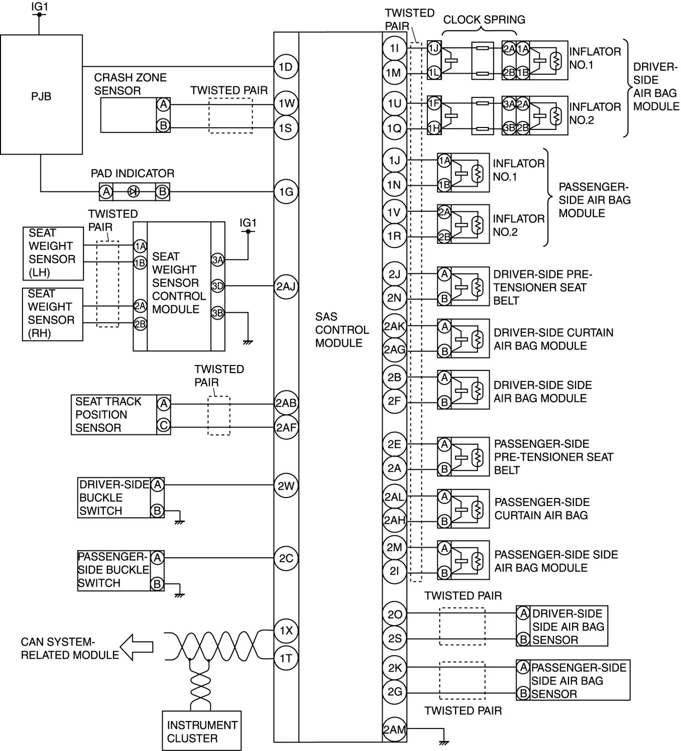 AIR BAG SYSTEM WIRING DIAGRAM (ON-BOARD DIAGNOSTIC)
