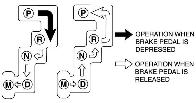 2. With the brake pedal depressed, verify that there is a "click" at each range when shifted.