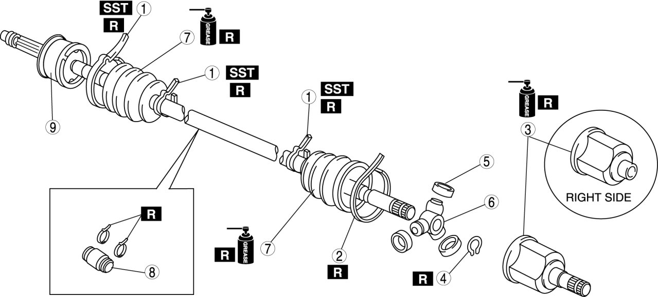 - The boot shapes on the wheel side and the differential side are different. Do not install the wrong boot by mistake.