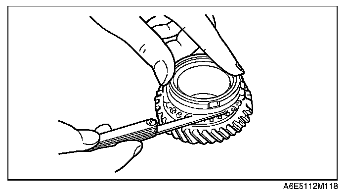 3. Measure the clearance between the synchronizer ring and the flank surface of the gear.