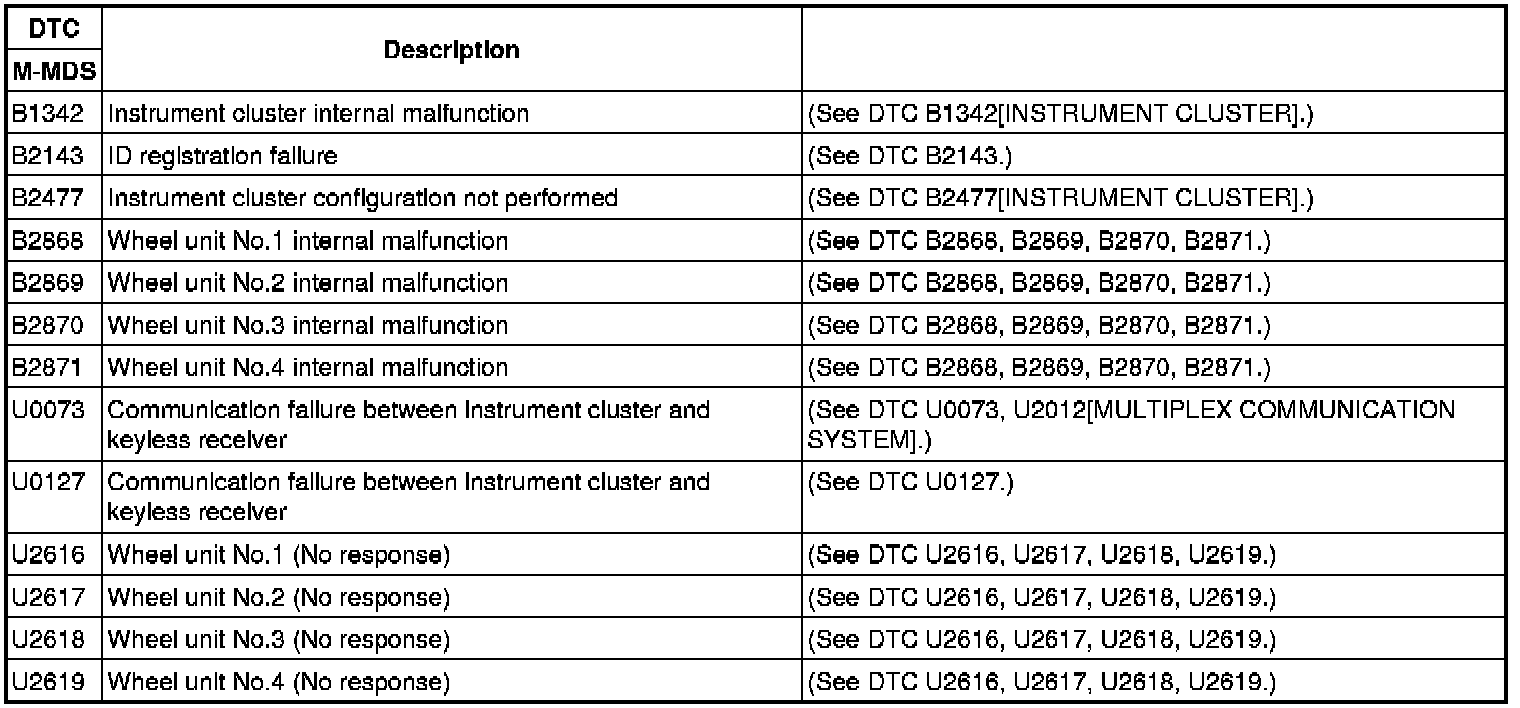DTC Table Tire Pressure Monitoring System (TPMS)