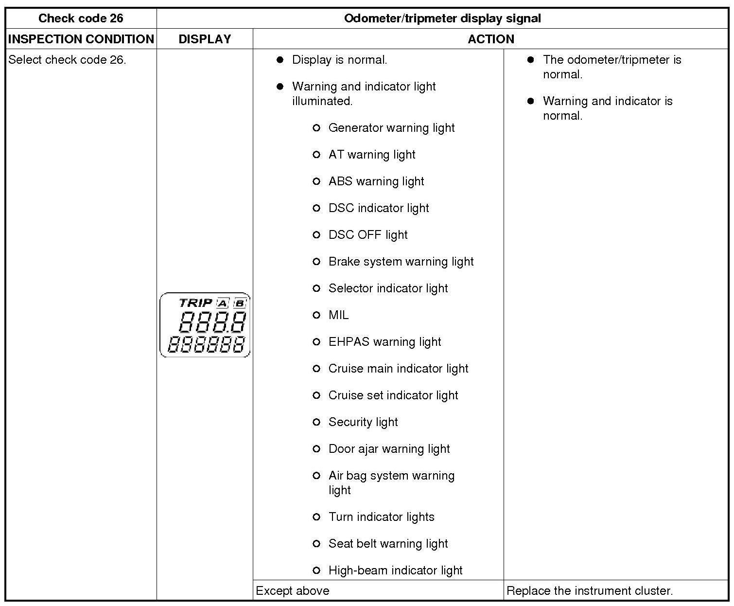 INSTRUMENT CLUSTER INPUT/OUTPUT CHECK MODE