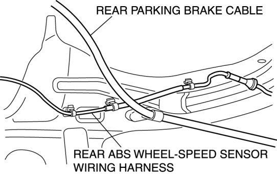 1. Pass the rear ABS wheel-speed sensor wiring harness outside the rear parking brake cable as shown in the figure.