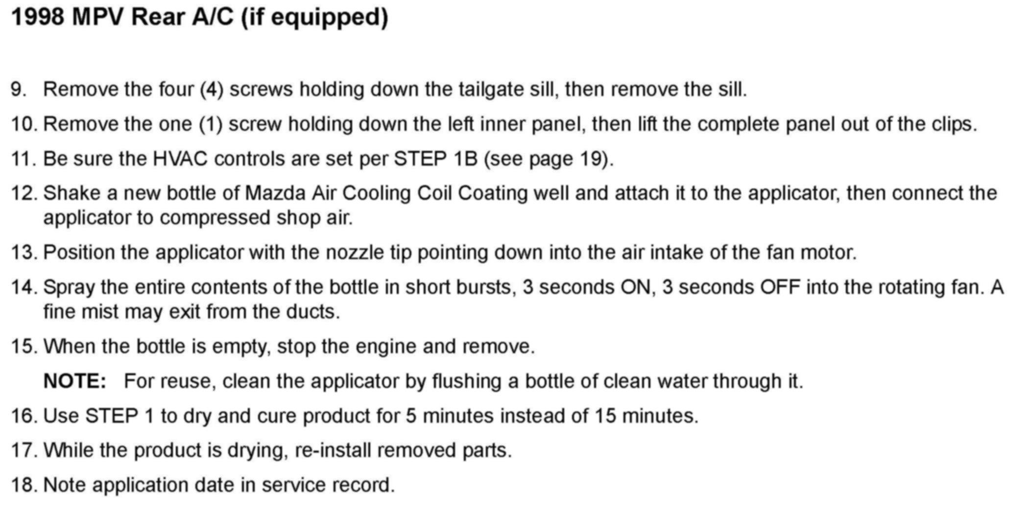 1998 MPV Rear A/C (if equipped)