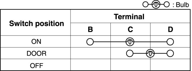 Verify that the continuity between the interior light terminals is as indicated in the table.