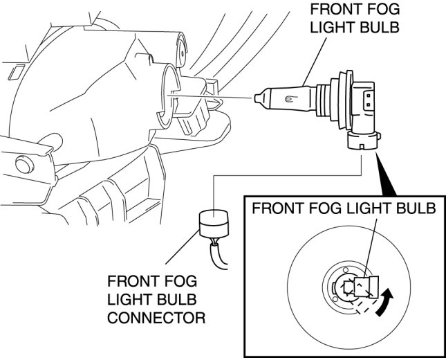 3. Disconnect the front fog light bulb connector and remove the front fog light bulb by turning it in the direction of the arrow.