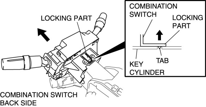 1. Pull the combination switch locks in the direction indicated in the figure and disengage the tab.