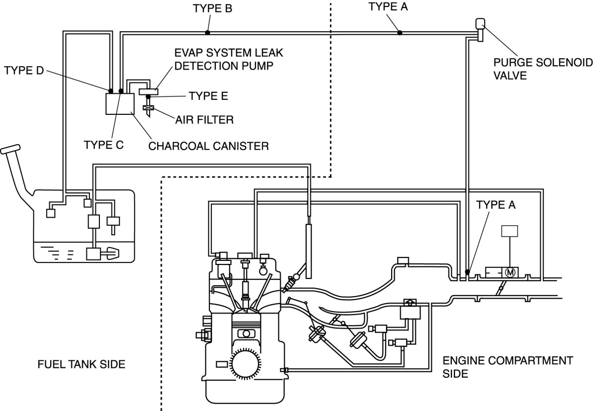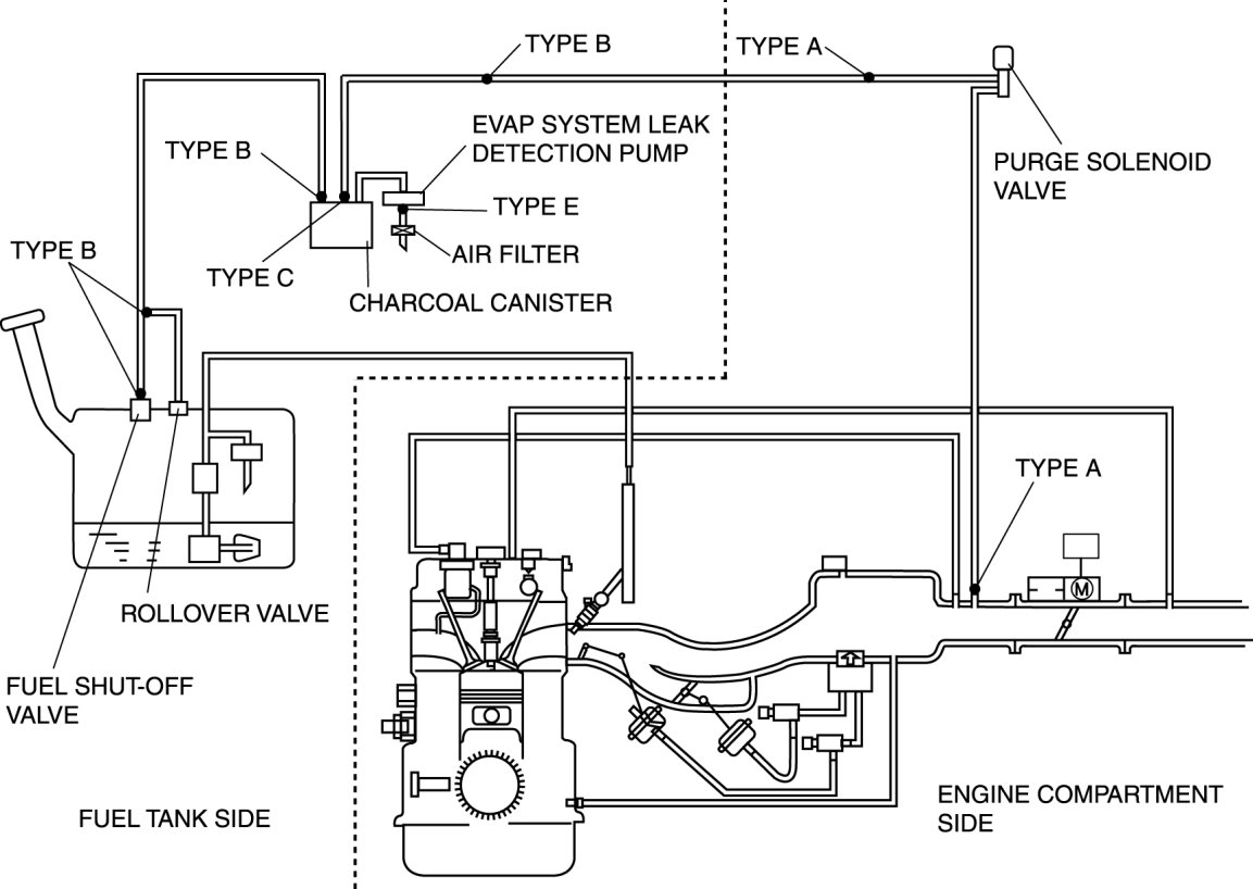 1. Inspect the evaporative hose and joint port sealing surface for damage and deformation.