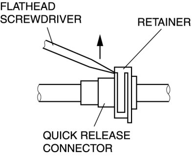 - The quick release connector can be removed by pushing the center of the retainer tabs.
