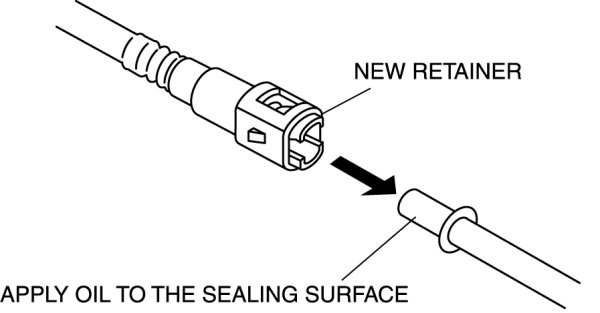 2. Install a new retainer to the quick release connector, then visually verify that the retainer tab is installed securely to the connector.