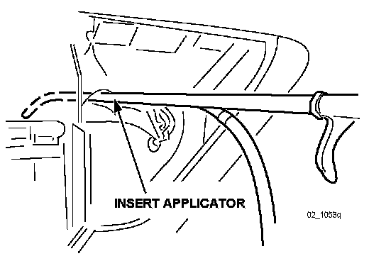 4. Insert the applicator through the right side the glove box guide into the grille of the recirculation door. Point the nozzle tip downwards and towards the center (approximately 7 o'clock position).