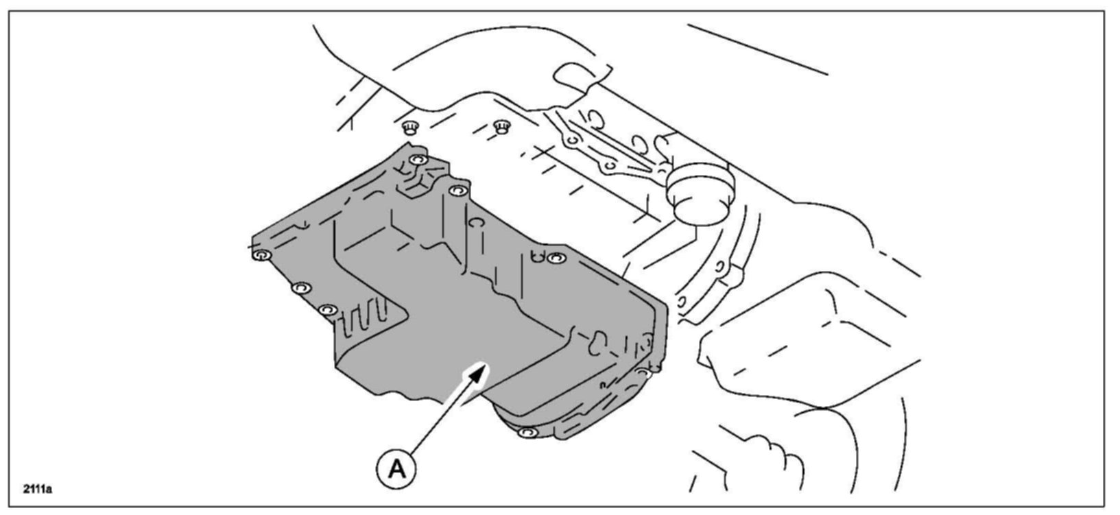 The removal / installation procedure and suggested repair time of engine oil pan have been updated. When you remove / install the engine oil pan (A) to repair oil leakage from the engine oil pan or other reasons, be sure to follow this updated procedure.