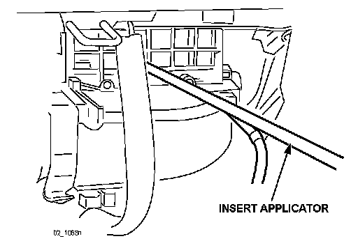5. Insert the applicator into the grille of the re-circulate door. Point the nozzle tip down and towards the center of the cooling unit (approximately 7 o'clock position).