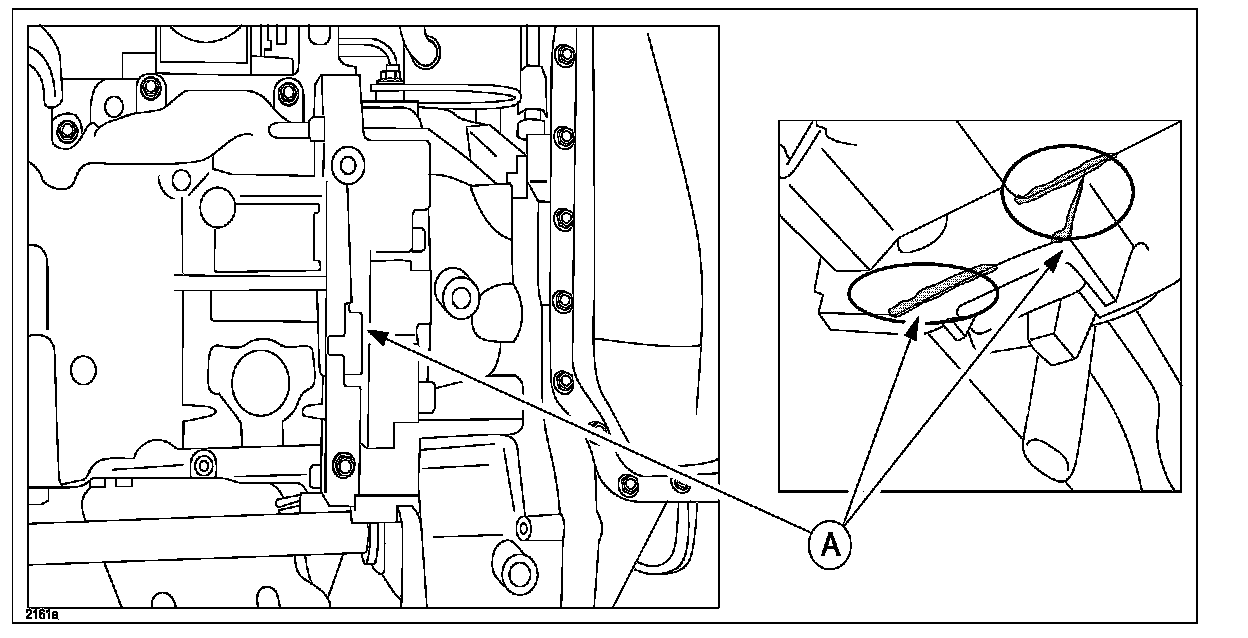 During Pre-Delivery Inspection (PDI), an oil leak may be found under fitting surface (A) between engine and bell housing of the automatic transaxle. The concern may be incorrectly diagnosed as an automatic transaxle or engine oil leak. A new repair procedure has been developed to correct this concern.