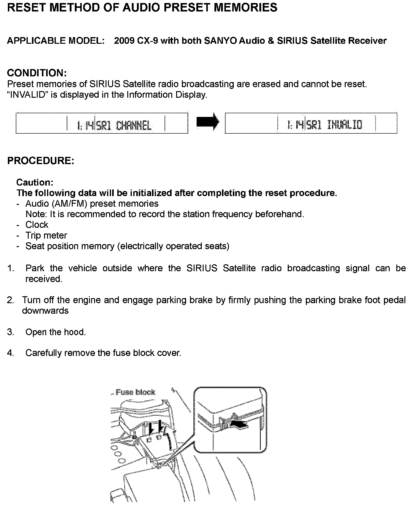 Reset Method of Audio Preset Memories - Model 2009 CX-9