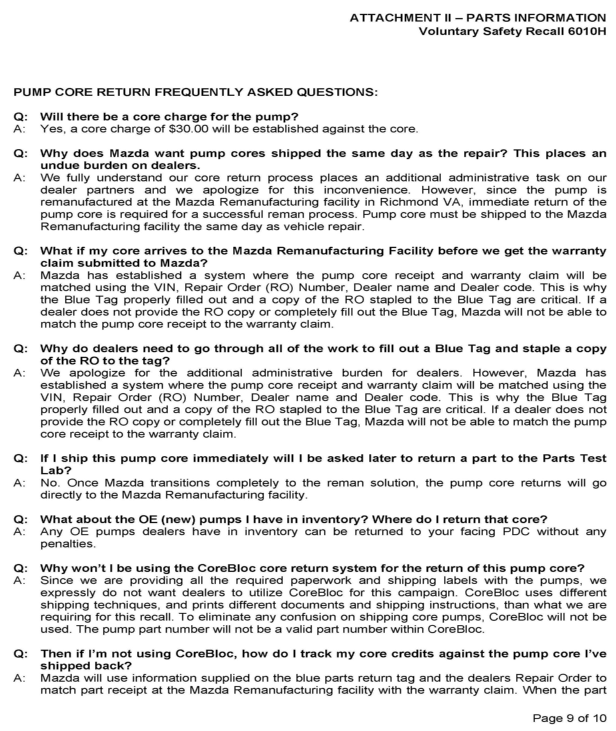 Attachment II - Parts/Questions and Answers