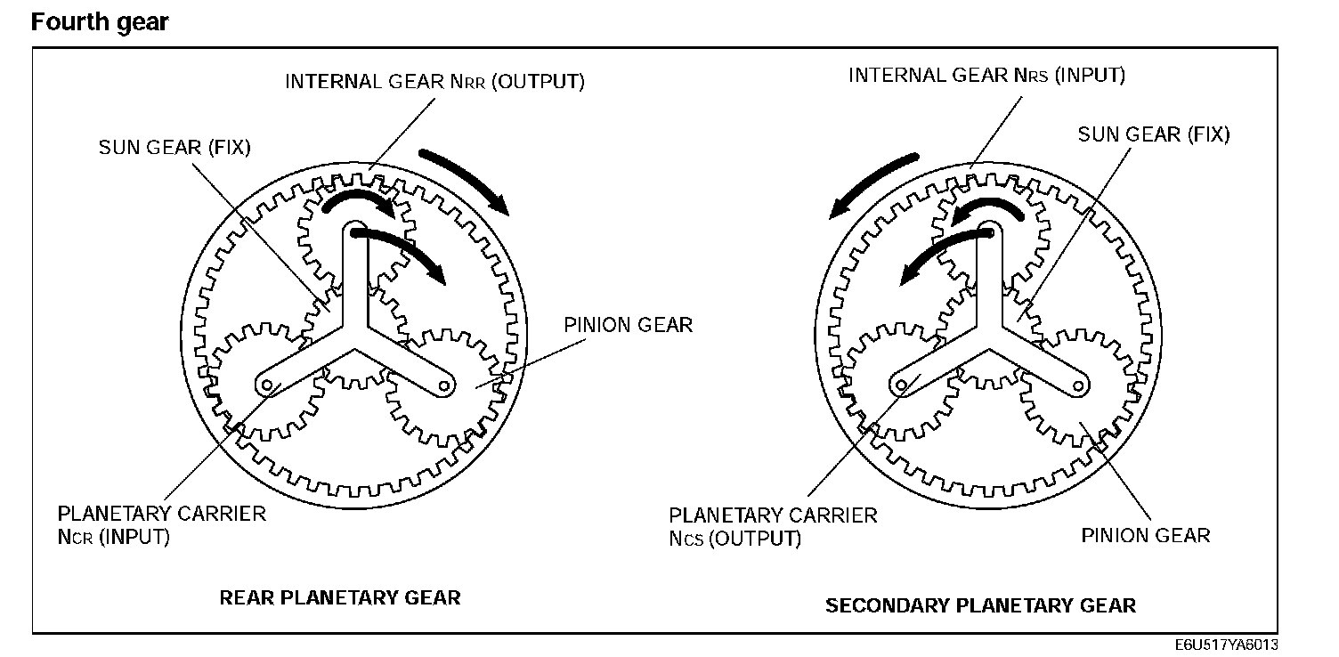 ^ From the result NSS=0 in formula (1), the rotation speed of the secondary planetary gear unit can be calculated using the following formula.