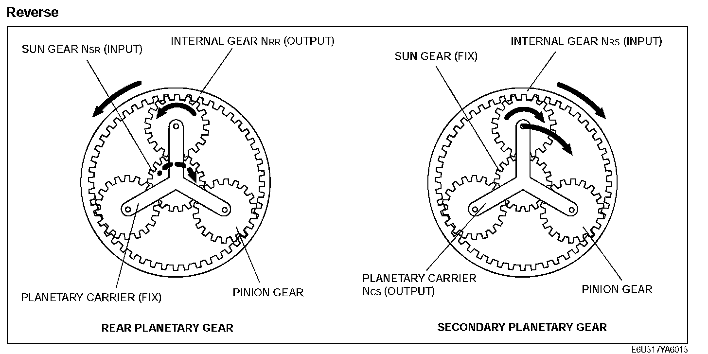 ^ From the result of NCR=0 in formula (2), the relation between the gear ratio during reverse movement and the rotation speed of the planetary gear set is indicated in the formula below.