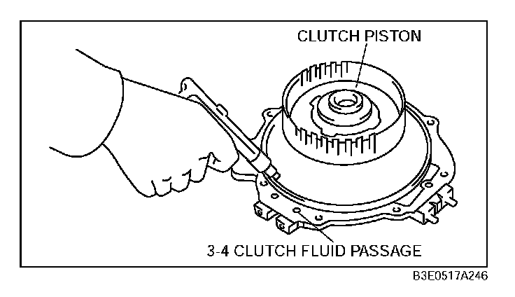 2. Remove the 3-4 clutch piston from the 3-4 clutch drum by applying compressed air through the fluid passage.