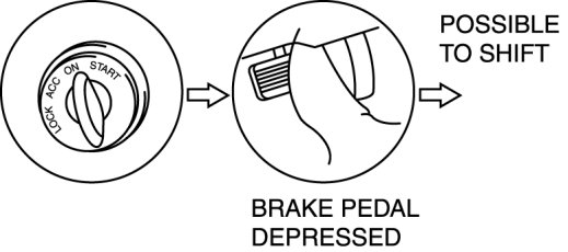 4. Depress the brake pedal and verify that the selector lever can be shifted from the P position.