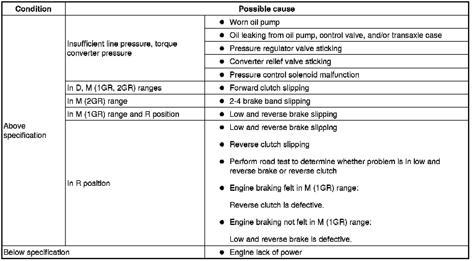 12. When the engine speed no longer increases, quickly read the line pressure and release the accelerator pedal.