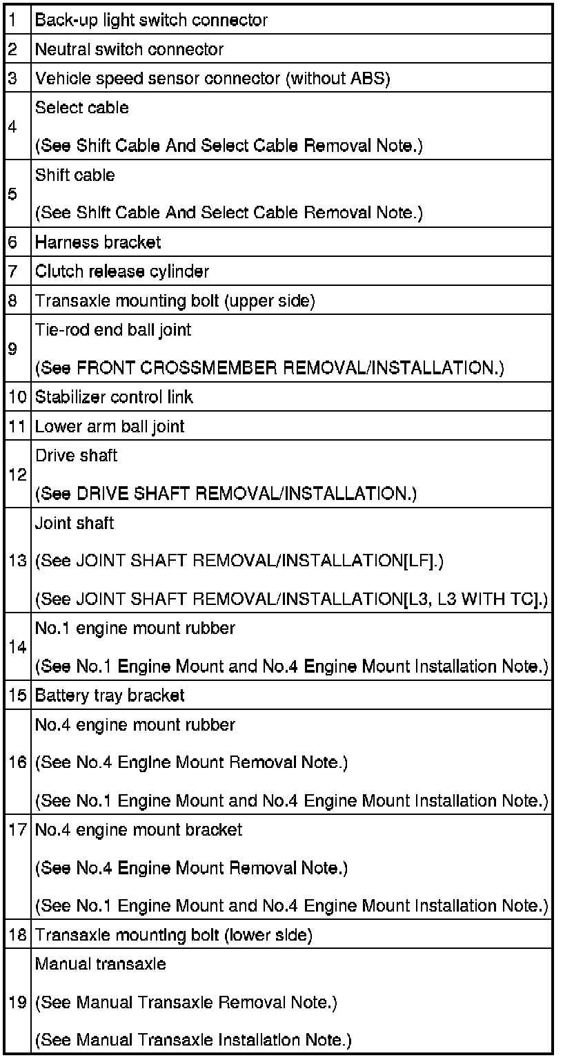 Manual Transaxle Removal Note
