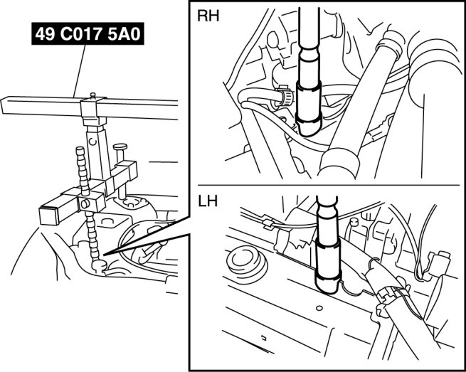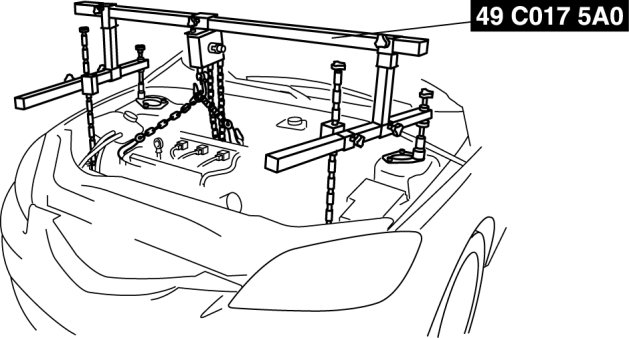 3. Adjust the SST (49 C017 5A0) so that the engine is located at the specified position.
