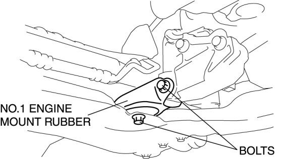 2. Install the No.1 engine mount rubber to the cross member and temporarily tighten bolts.
