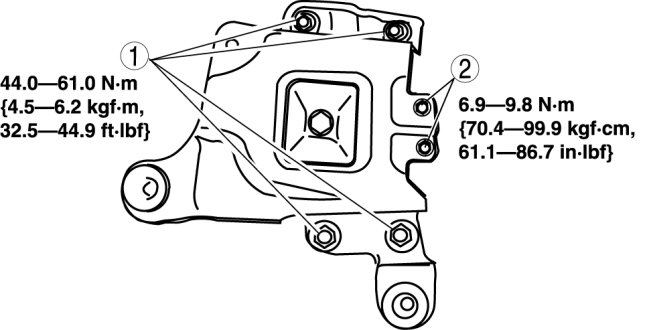 1. Install the No.4 engine mount bracket on the transaxle case and tighten bolt and nuts.
