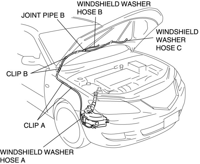 6. Disconnect windshield washer hose B from the washer nozzle.