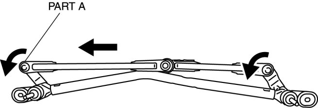 2. Rotate the windshield wiper link so that part A shown in the figure is as far to the left as possible.