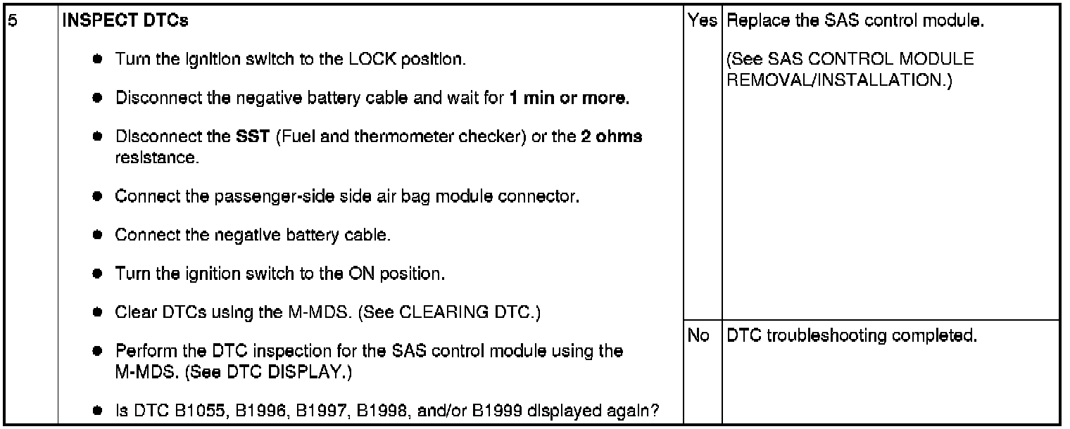 DTC B1055, B1996, B1997, B1998, B1999