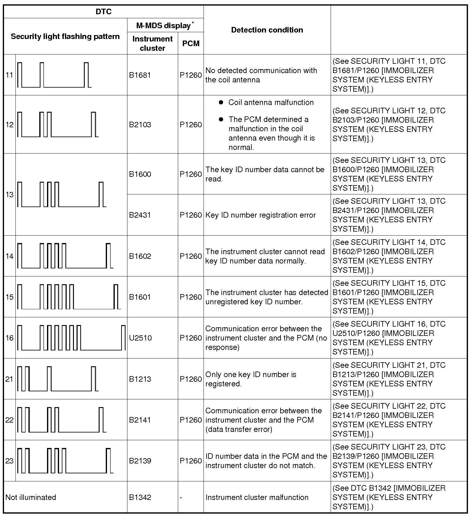 DTC TABLE [IMMOBILIZER SYSTEM (KEYLESS ENTRY SYSTEM)]